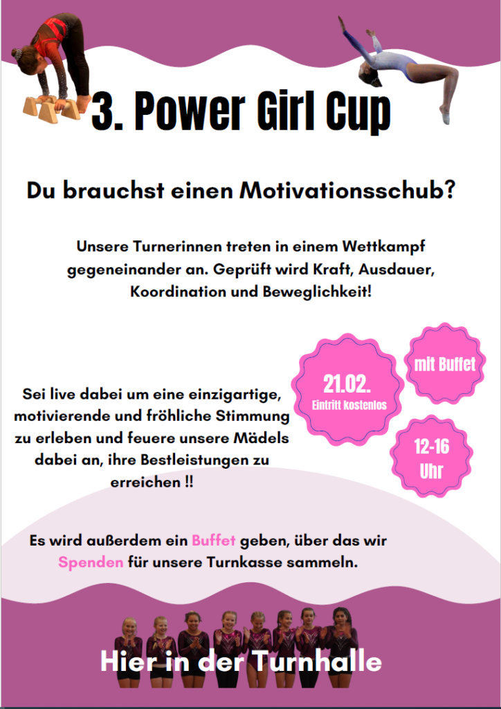 In unserem Power Girl Cup treten Turnerinnen gegeneinander an und beweisen ihr können von Kraft bis Beweglichkeit. Hier lohnt sich das Reinschnuppern für alle – beste Laune und eine große Portion Motivation für 2026 inklusive.