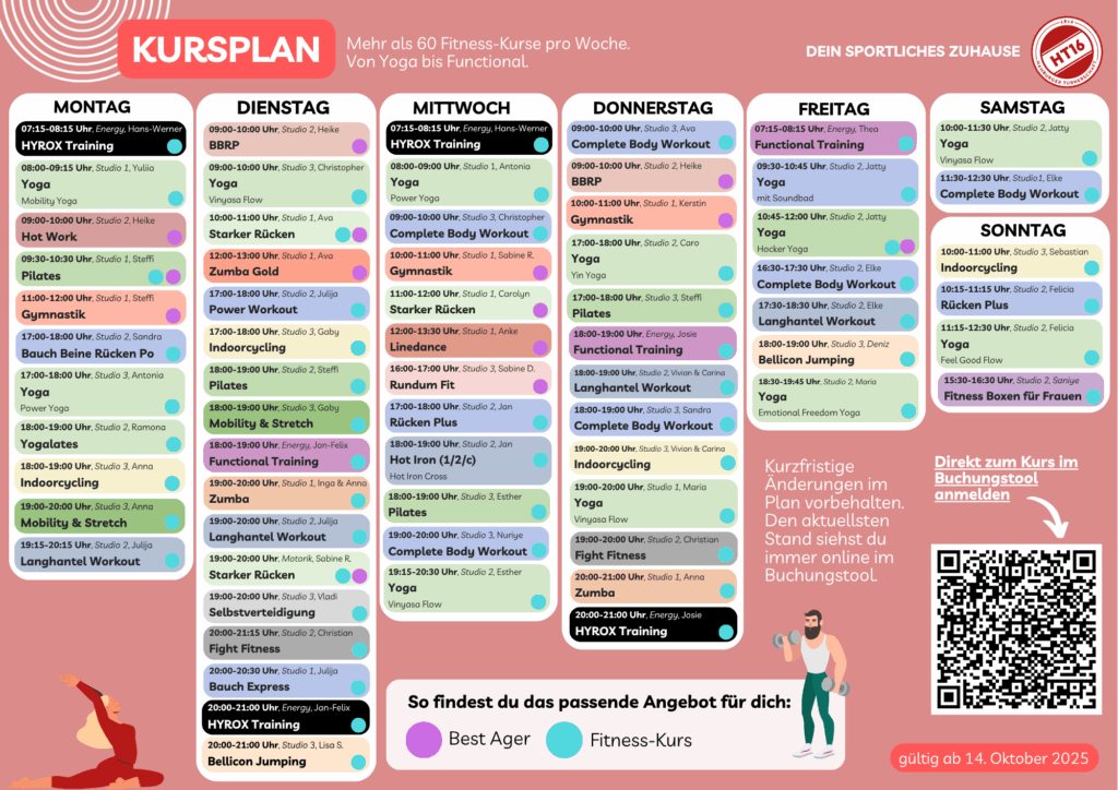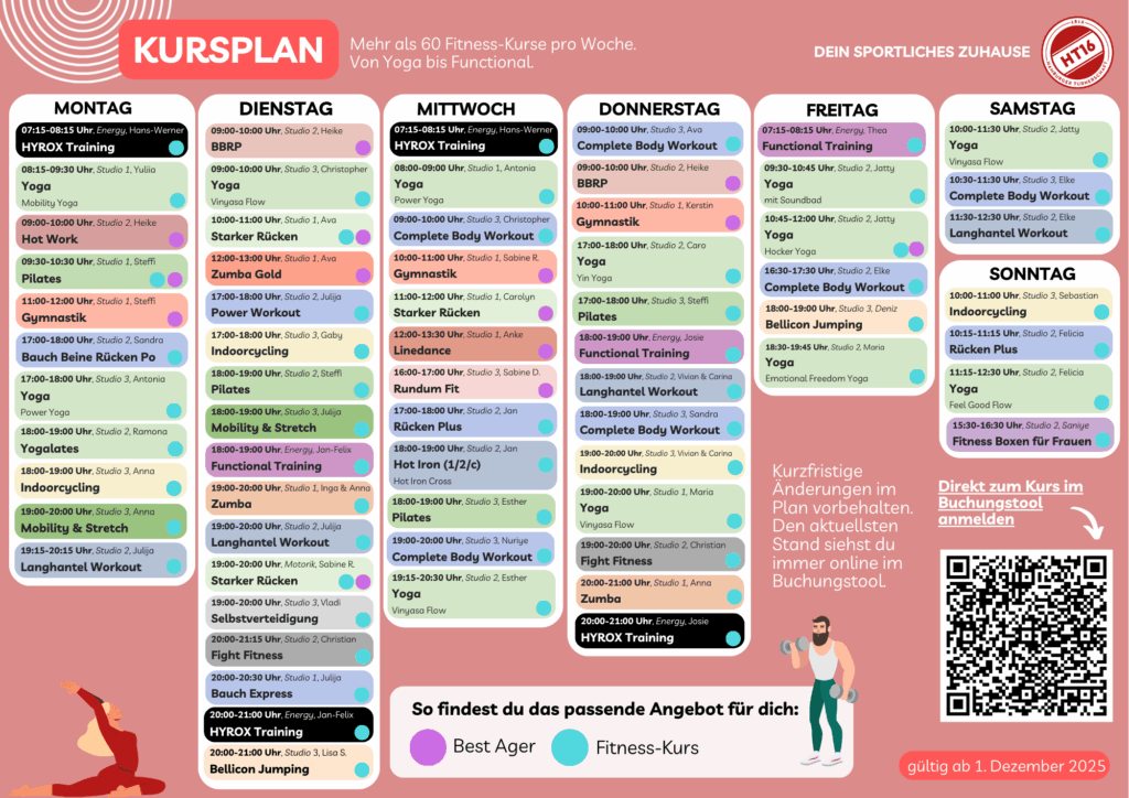 60 Kurse pro Woche, 25 verschiedene Kursinhalte – Qualität und Vielseitigkeit sind der Maßstab für unser Kursprogramm.