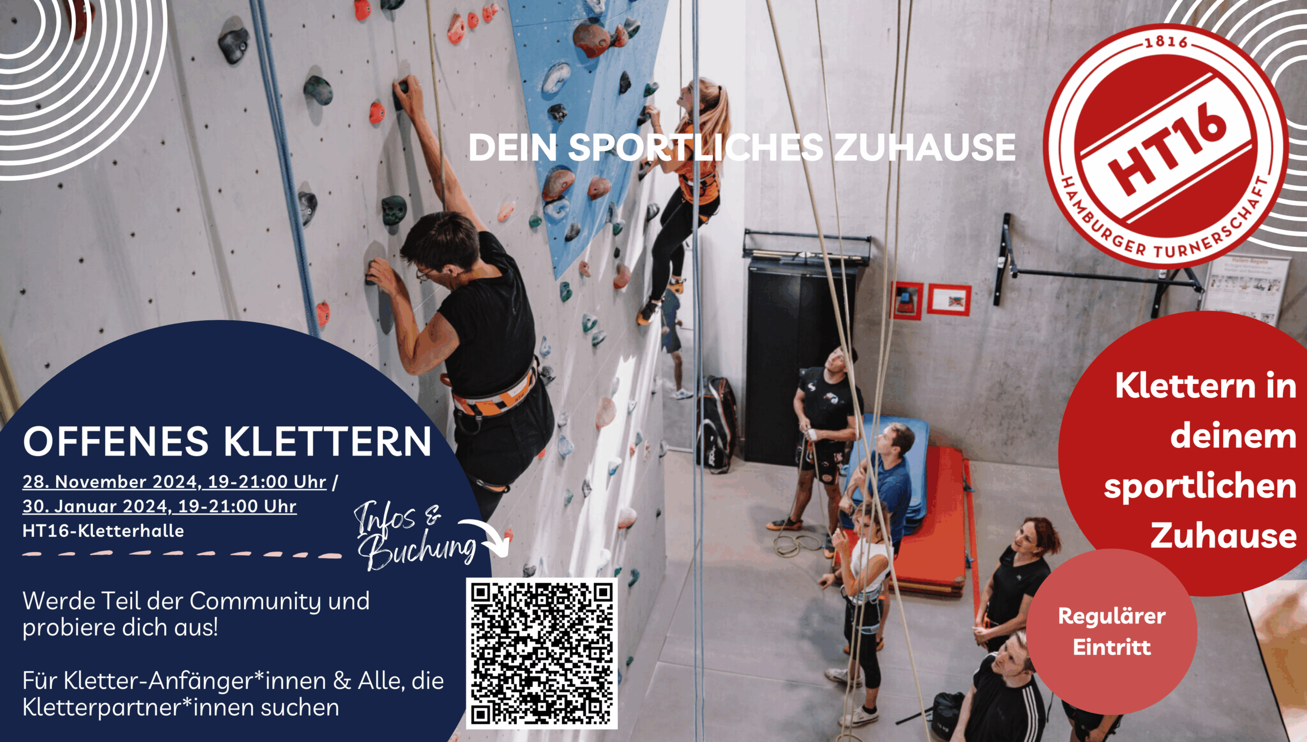 An alle Sportsfreunde: DIESEN Donnerstag – 28.11.24 – findet das erste OFFENE KLETTERN von 19:00-21:00 Uhr statt!