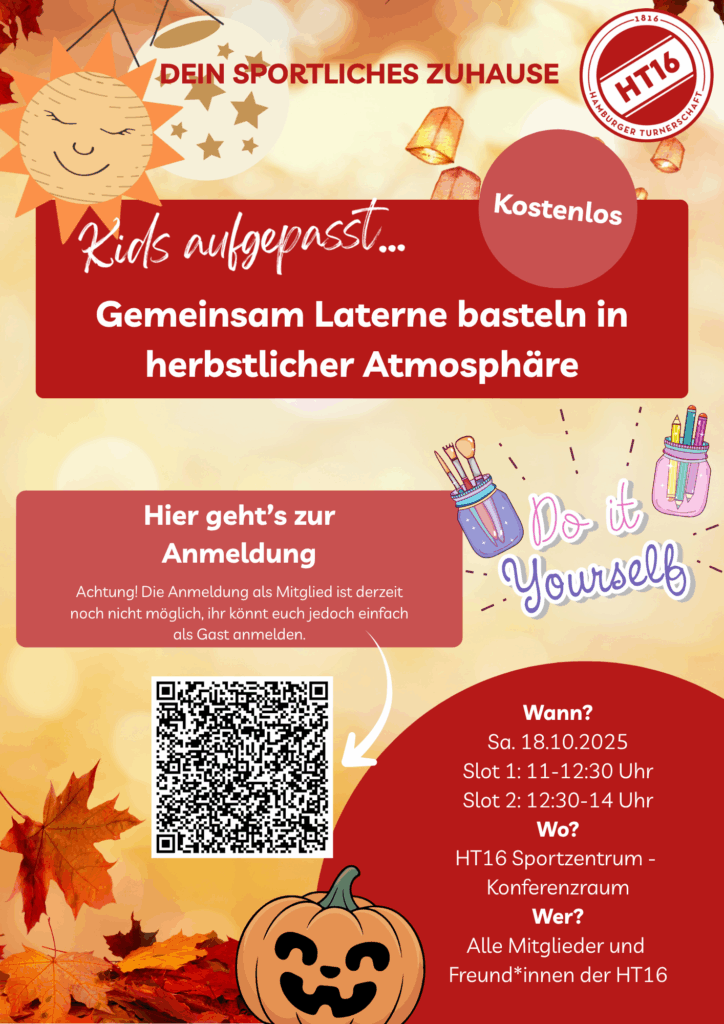 Am Samstag, den 18.10.25, findet wieder unser alljährliches Laterne basteln bei uns im Haus statt. Hierbei dürfen sich die Jüngsten unter euch am Basteltisch austoben, eurer Fantasie sind keine Grenzen gesetzt!