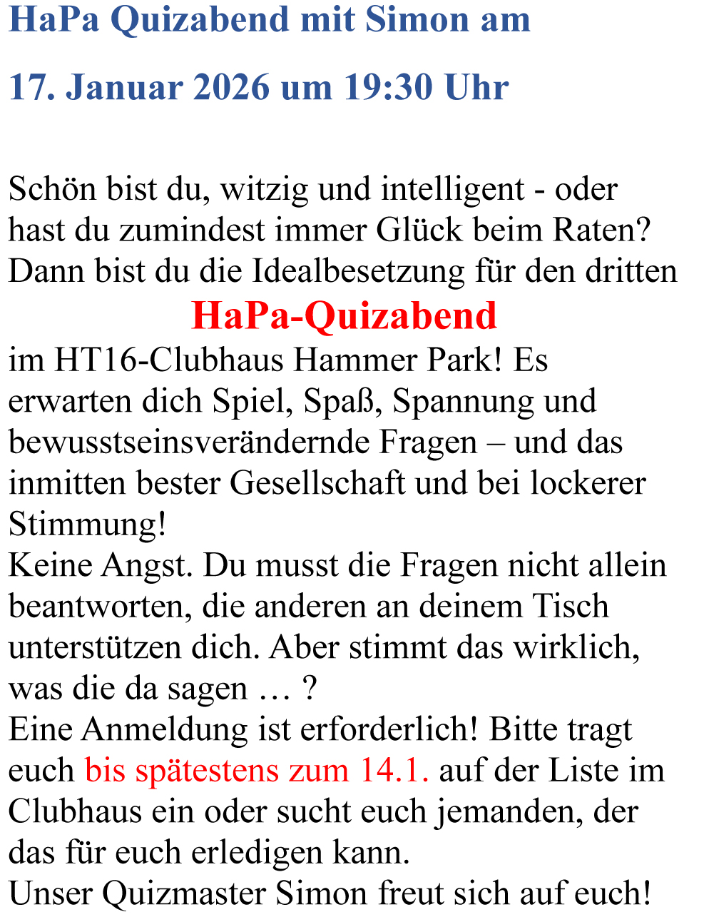 17.01.26 19:30 Quizabend mit Simon (weitere Informationen)