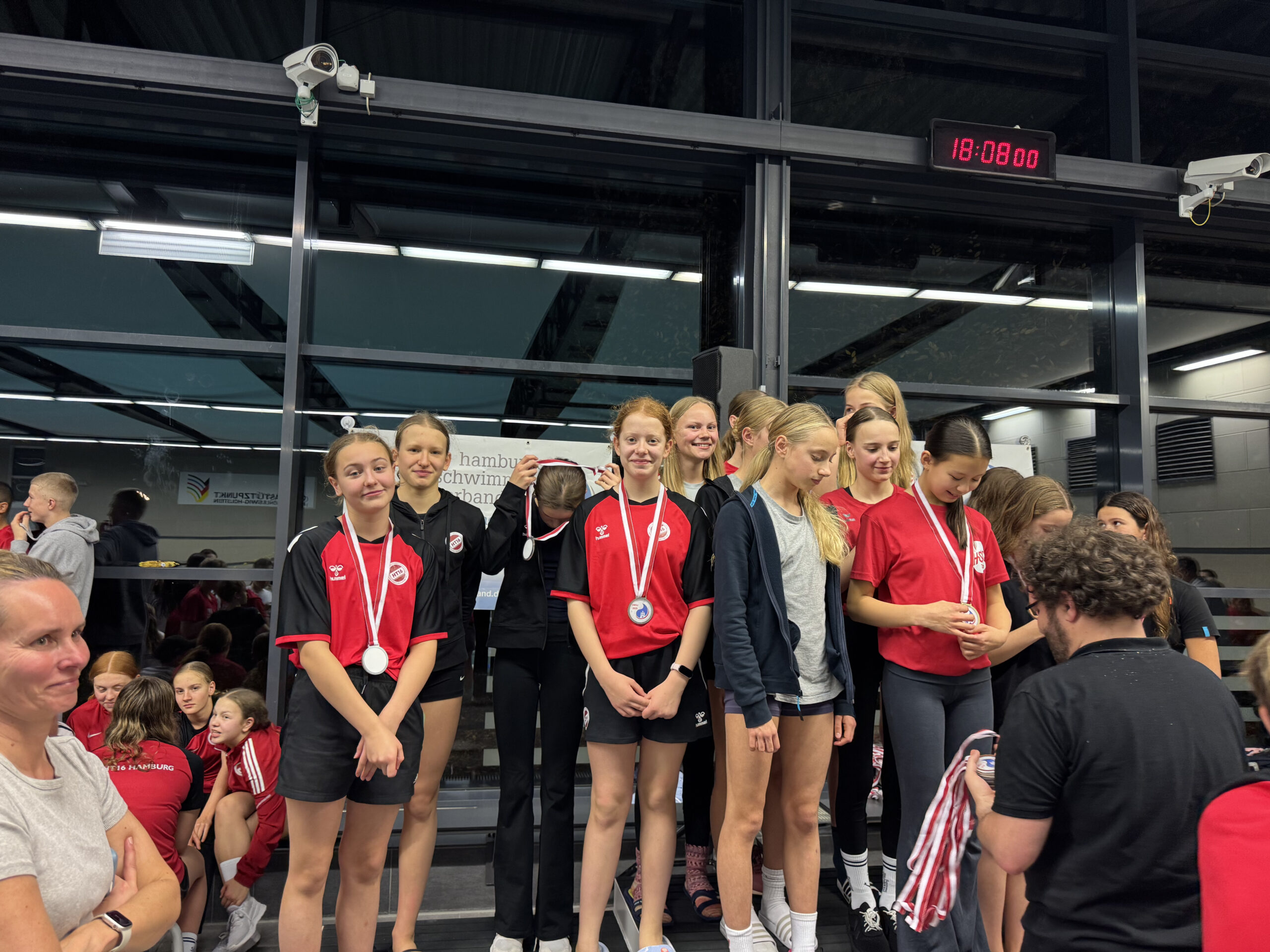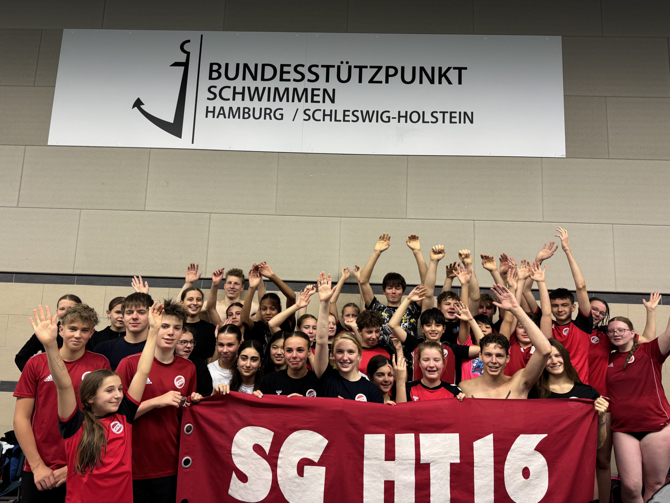 Am vergangenen Wochenende fand im Landesleistungszentrum Dulsberg der Landesentscheid der Deutschen Mannschaftsmeisterschaften Schwimmen der Jugend (DMSJ) statt. Die SG HT16 Hamburg war mit zahlreichen Mannschaften von der Jugend E bis zu den Junioren vertreten und zeigte dabei eindrucksvoll, was Teamgeist und Zusammenhalt im Wasser bedeuten. Schon vom ersten Start an herrschte eine super Stimmung in der Halle – lautstarke Anfeuerung, gegenseitige Unterstützung und eine tolle Atmosphäre begleiteten das gesamte Wochenende.